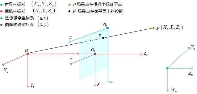 4、世界坐标系:也称为绝对坐标系,用于表示场景点的绝对坐标