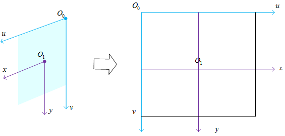 这里我们需要先放一张像平面的正视图来更好的说明这个转换关系: