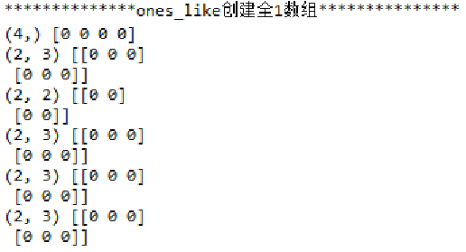 np.zeros_like(a):创建与a对象相同尺寸的全0数组。a可以是列表、元组或者数组
