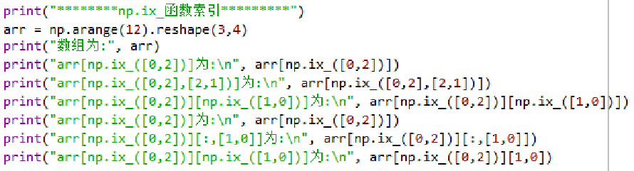 arr[np.ix_(arr1)][arr2, arr3]------先根据arr1获得arr的行组成新矩阵,然后再根据arr2和arr3组成的坐标在新矩阵中寻找值。