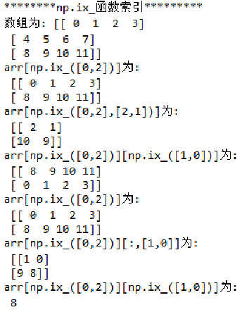 arr[np.ix_(arr1, arr2)]------arr1数组和arr2数组中对应元素组合成位置坐标,从arr中取值