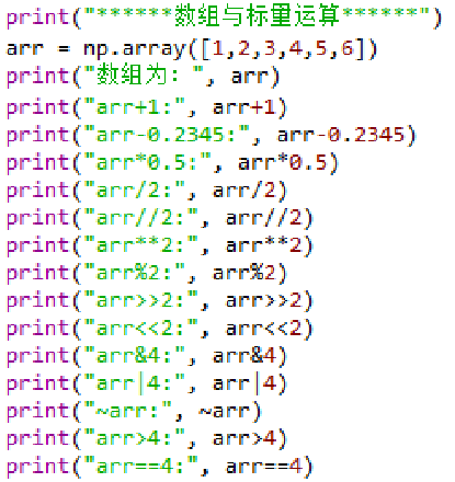 (0) 数组和标量间的运算(数组可以直接和标量进行算术、关系等运算)