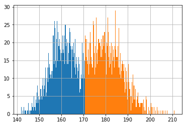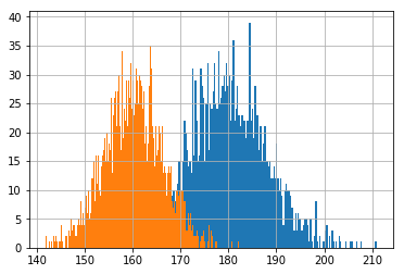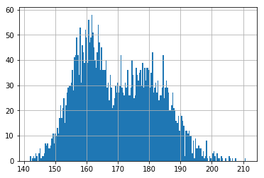 pd.Series(sim_data_boy).hist(bins=200) #hist(bins=200)绘制直方图,bins 指定像素
