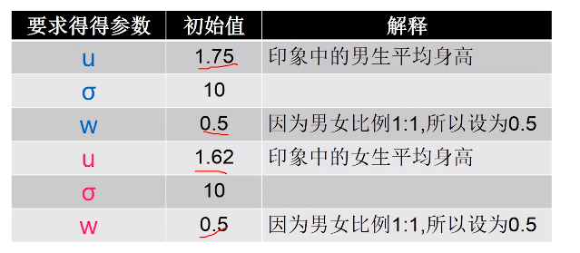 在校园里随机抽取2000个学生,其中有男有女,已知男生,女生的身高都服从高斯分布,这两个高斯分布的均值和方差我们都不知道,另外由于某种原因,我们也不知道2000个学生里男生和女生的个数,现在我们要求出两个分布的均值和方差,还有男女比例。
