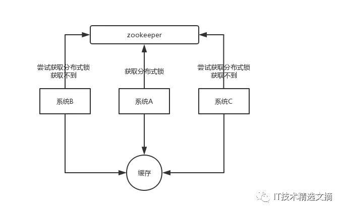 某个时刻,多个系统实例都去更新某个 key。可以基于 zookeeper 实现分布式锁。每个系统通过 zookeeper 获取分布式锁,确保同一时间,只能有一个系统实例在操作某个 key,别人都不允许读和写。