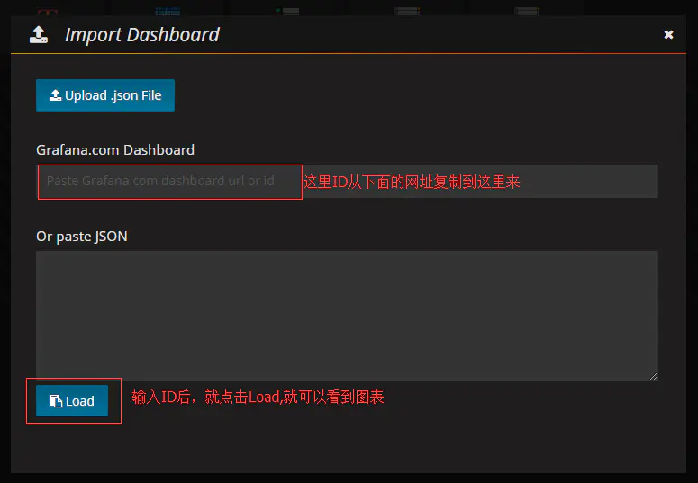 然后从别人编辑好面板复制https://grafana.com/dashboards/928ID到上面