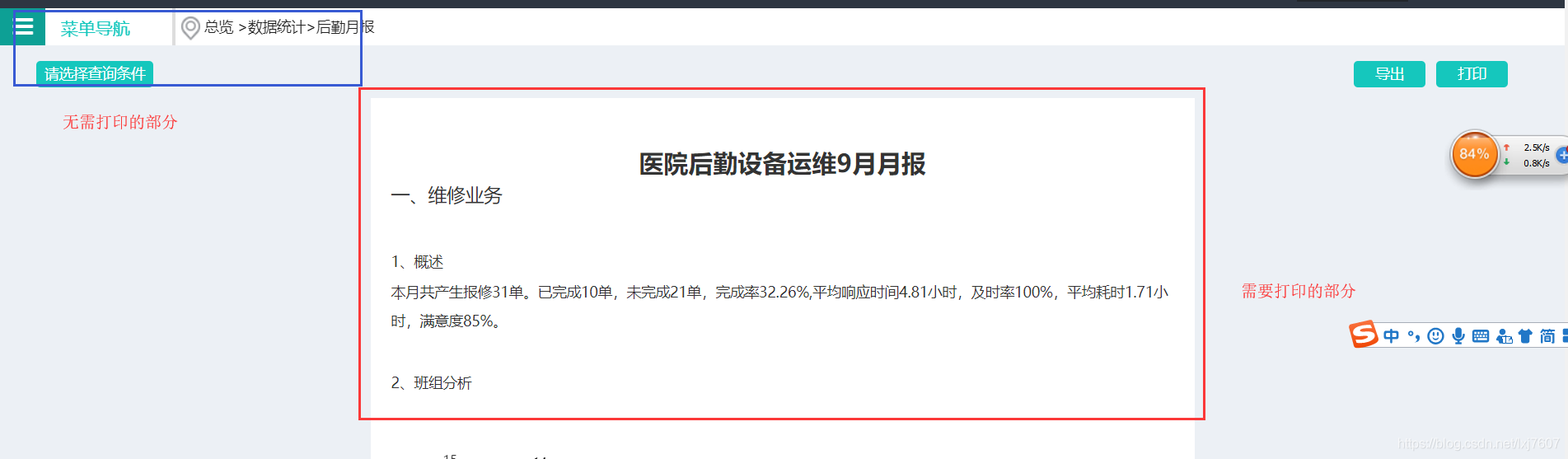 有个问题,尽管通过document.getElementById('monthlyReport')获取了对应的id,但是在打印时还是会打印当前页面的东西,有一部分不需要的东西也被打印了