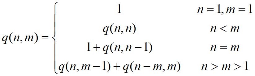 (2)m=n:q(n,m)=1+q(n,m-1)