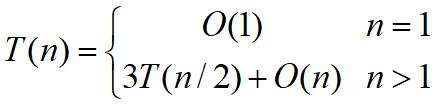 利用公式得到的:T(n)=3T(n/2)+O(n)=O(n^1.59)
