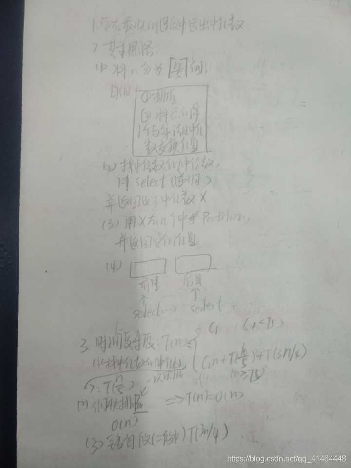 ③在选择出的段中进行再一次的select(T(3n/4))