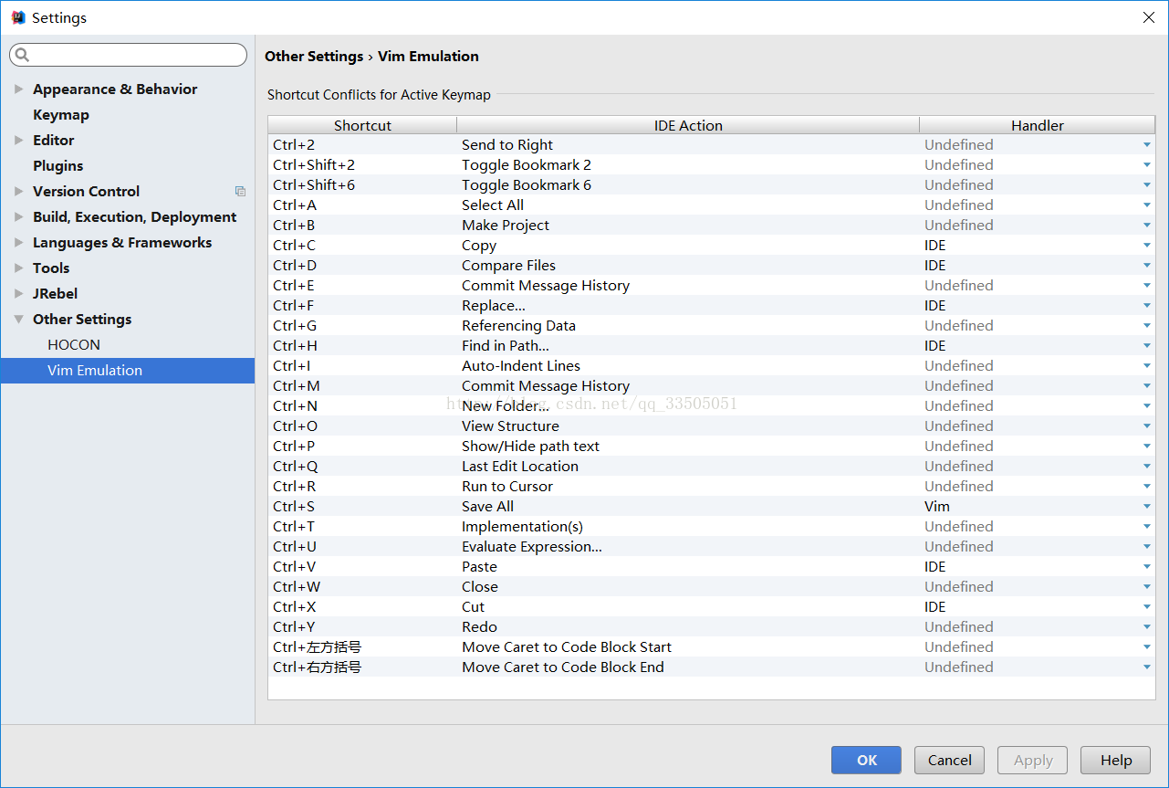 file > settings > vim emulation 然后把这里面的快捷键设置为IDE,一定IDE,不要Vim 也不要 Undefined. 然后就好了啊