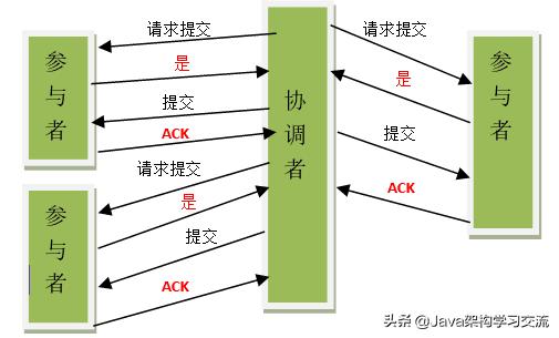 缺点:数据不一致问题依然存在,当在参与者收到 preCommit 请求后等待 do commite 指令时,此时如果协调者请求中断事务,而协调者无法与参与者正常通信,会导致参与者继续提交事务,造成数据不一致。