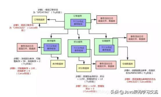 c) Cancel 阶段主要是在业务执行错误,需要回滚的状态下执行的业务取消,预留资源释放。