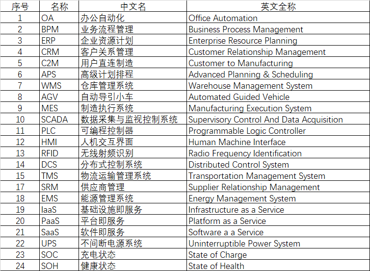序号 名称 中文名 英文全称