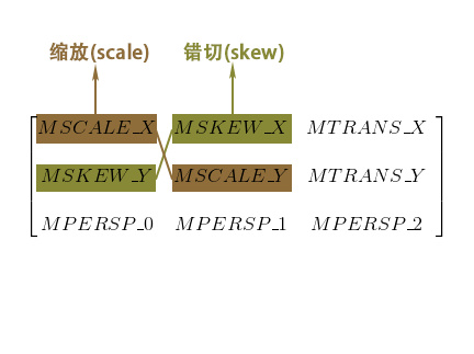 当 T*S 的时候,缩放比例则不会影响到 MTRANS_X 和 MTRANS_Y ,具体可以使用矩阵乘法自己计算一遍。
