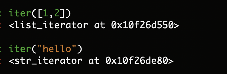 所以虽然看起来「惰性可迭代对象」和「迭代器」之间的区别很微妙,但这些术语确实意味着不同的东西。 虽然「惰性可迭代对象」是一个没有具体含义的非常普遍的术语,但「迭代器」这个词意味着一个具有非常特定行为的对象。