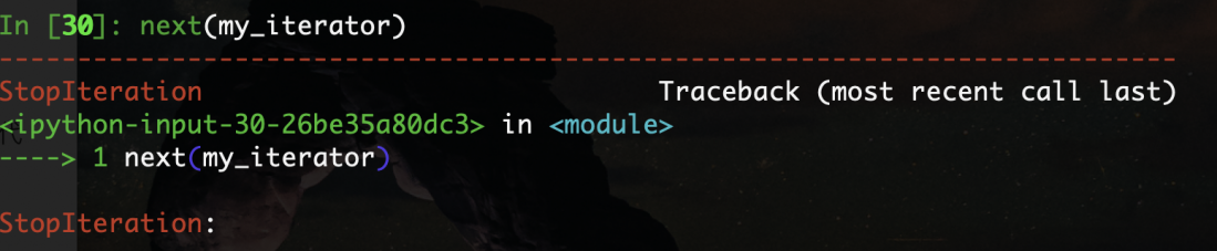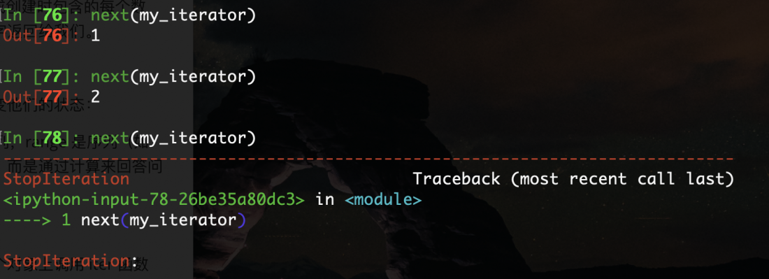如果没有更多的元素了, 则会抛出一个 stop iteration exception: