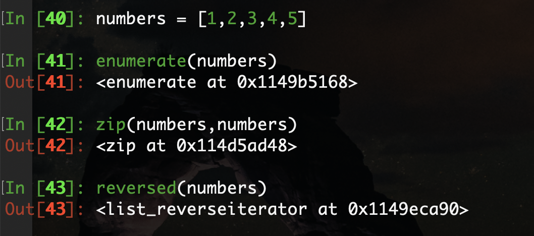 在 Python 3 中,enumerate、zip、reversed和其他一些内置函数会返回迭代器: