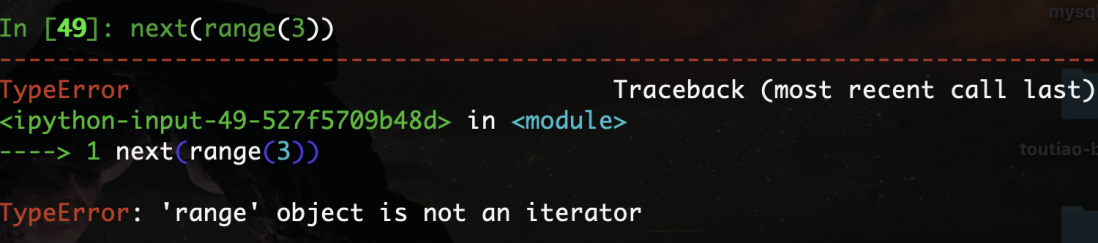 但 range 对象本身不是迭代器,我们不能在 range 对象上调用 next