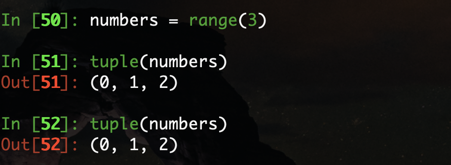 如果你可以循环多次而不用「耗尽」它,它不是一个迭代器。如果你不能将某些东西传递给 next 函数,那么它不是一个迭代器。 Python 3 的 range 对象不是迭代器。 如果你正在指导别人关于 range 对象的知识,请不要使用「迭代器」一词,这会让人十分困惑,并可能导致他人开始滥用「迭代器」这个词