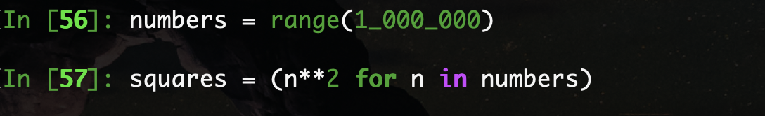如果你知道你正在循环遍历的对象是在循环的时候计算出来,那么这是一个惰性可迭代对象(lazy iterable)。
