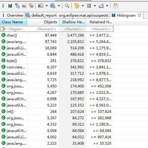 从这个图可以很直观的看出来每一个在heap区中的实例数量