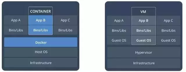容器是完全使用沙箱机制,相互之间不会有任何接口(类iphone的app),并且容器开销极其低。