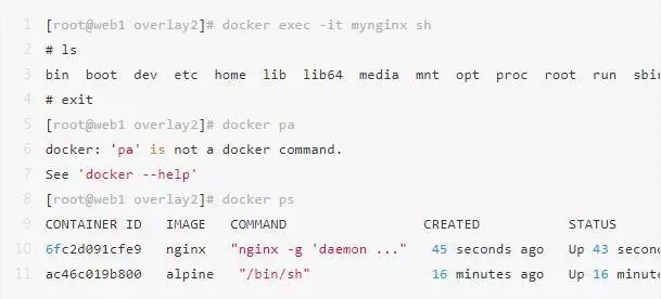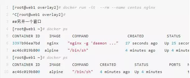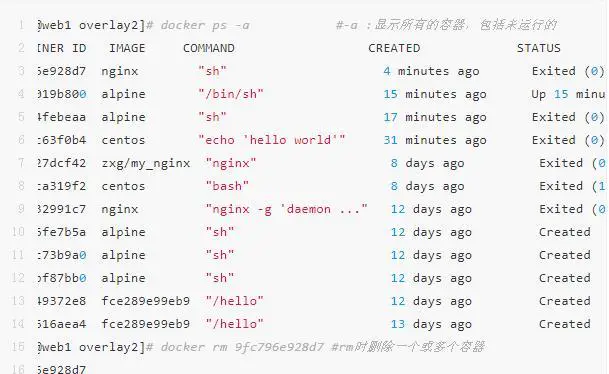 容器是镜像的运行实例,当被运行时有镜像状态和用户进程,可以使用docker ps 查看。
