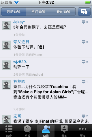 开源中国社区简介:开源中国 www.oschina.net 成立于2008年8月,是目前中国最大的开源技术社区。传播开源的理念,推广开源项目,为 IT 开发者提供了一个发现、使用、并交流开源技术的平台。目前开源中国社区已收录超过两万款开源软件。开源中国社区在移动设备上做了客户端以后,将他们源代码做了开源分享,让我们初学者有机会看到大牛们是怎样设计软件怎么写的代码,拿到源码也有一两个月了,只是草草的看了一遍,现在想深入的去学习一遍,分析一个完整工程代码,希望能收获些东西;