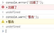 (2)除了console.log还有其他相关的指令可用(console.error,console.warn等)