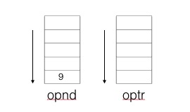 8、读入字符 '9',入栈 opnd,剩余待读入字符串为:/3,此时 opnd 栈和 optr 栈如下图所示: