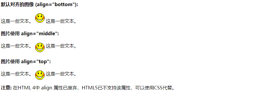 5、align:默认情况下,图像在页面中将显示为左侧对齐,在<img>标签中您可以使用align属性将设置图像的对齐方式:center(居中)或right(右侧)(已废弃)