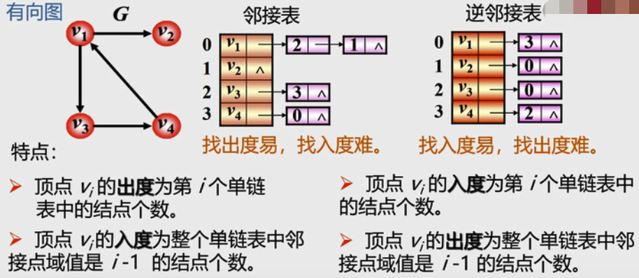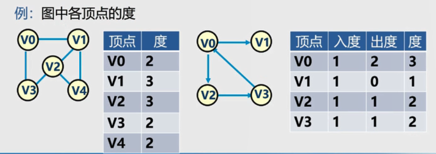 注:在有向图中,顶点的度等于该顶点的入度和出度之和。顶点v的入度是以v为终点的有向边的条数,记为ID(v);顶点v的出度是以v为始点的有向边的条数,记作OD(v)。