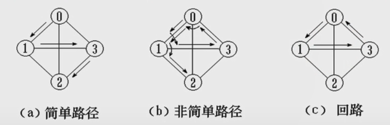 简单路径:除路径起点和终点相同外,其余顶点均不相同的路径。