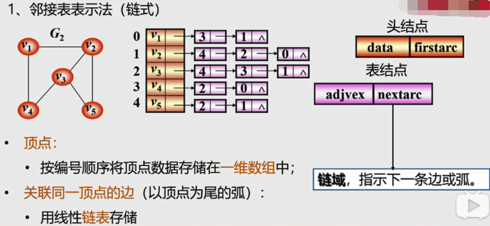 也可以用链式存储结构来表示:如多重链表(邻接表、邻接多重表、十字链表)
