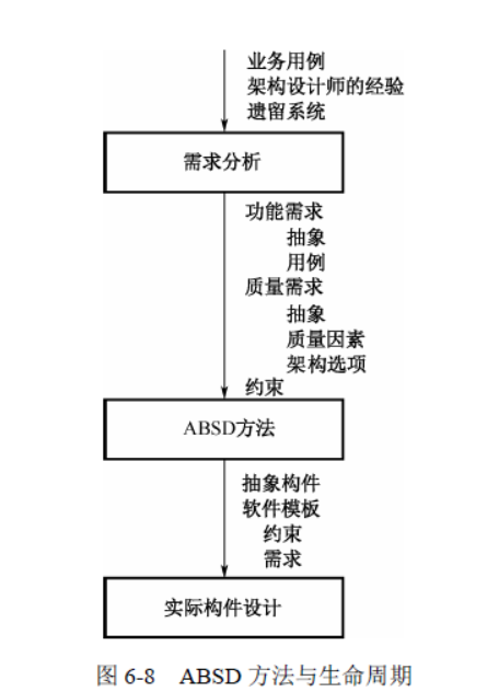 - (1):功能的分解ABSD 方法使用自己有的基于模块的内聚和耦合技术 (2) 通过选择架构风格来实现质量和业务需求(3)软件模版的使