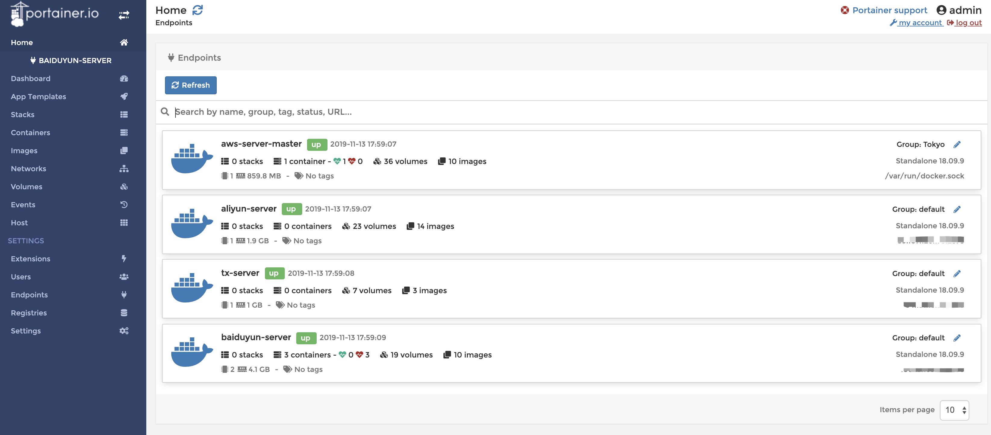 3.2 vps机器重装系统,使用部署脚本统一安装docker 18.0.9,并在aws上启动portainer容器,配置portainer连接到各个机器的docker daemon。