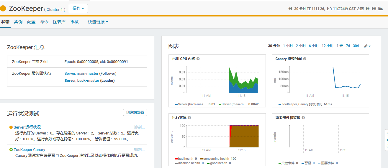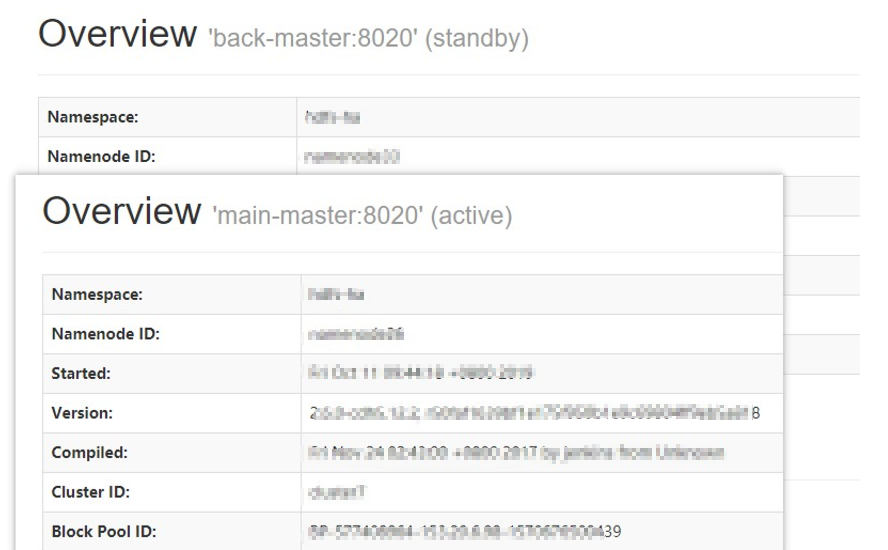 此时可以看到,我们设置的main-master和back-master的50070端口都已经打开。而且一个处于active 状态,一个处于standby。
