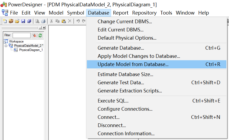 2.1 菜单选择,从数据库更新模型