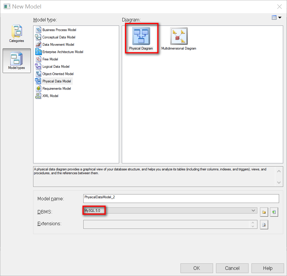 1.1 新建一个pdm,dbms选择mysql