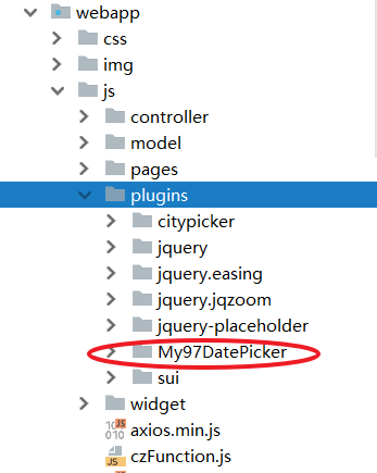 把下载后的My97DatePicker解压后放在webapp子目录下,如webapp/js/plugins/My97DatePicker