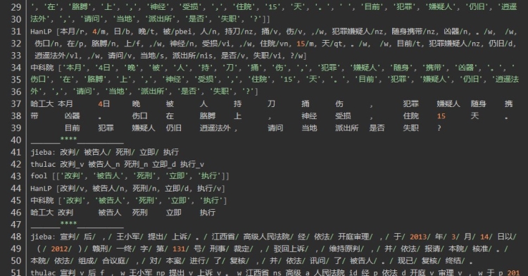 发现HanLP的分词粒度比较大,fool分词粒度较小,导致fool分词在上有较大的误差。在人名识别上没有太大的差异,在组织机构名上分词,分词的颗粒度有一些差异,Hanlp在机构名的分词上略胜一筹。