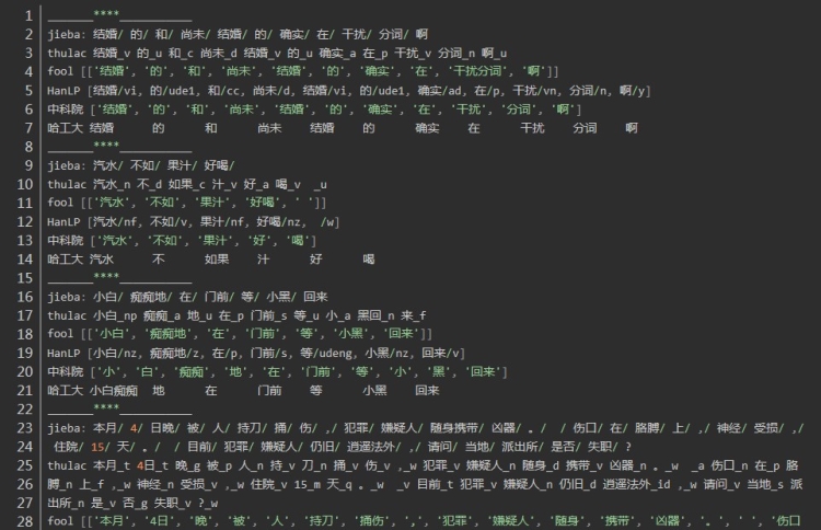 jieba thulac fool HanLP