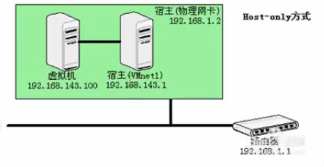 这种方式下,虚拟机的网卡连接到宿主机的Vmnet 1上,但系统并不为虚拟机提供任何路由服务,因此虚拟机只能和宿主机进行通信 ,而不能连接到实际网络上。