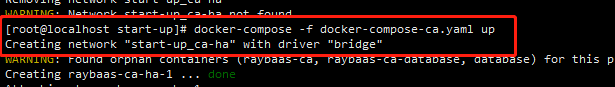 以下就是,两个yaml文件存放的父路径名不一样,导致创建的网络名称也不一样,一个是start-up_ca_ha,一个是database_ca_ha。