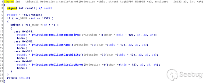 如下图可以看到rdpdr的数据包处理逻辑