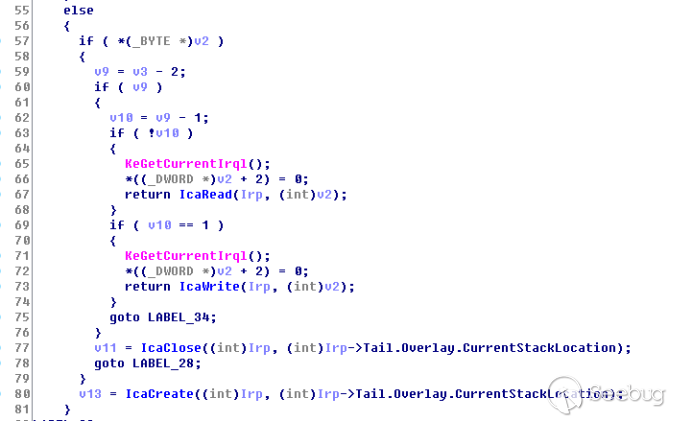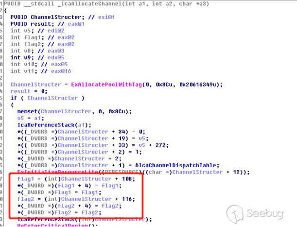 rdpdr经过一系列数据包处理后最终进入了我们关心的地方,将会传入channelstruct通过调用termdd! _IcaQueueReadChannelRequest进行标志位的处理