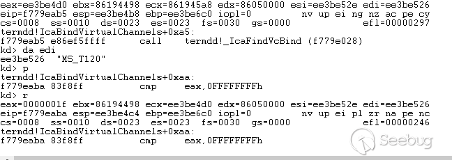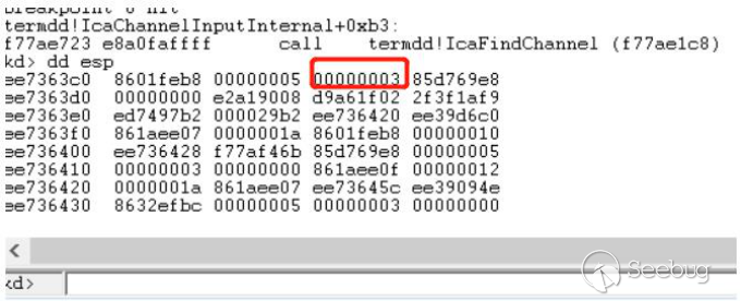 但是在termdd!_IcaBindChannel时,却将我们自定义的id值为3与信道结构体再一次绑定在一起了,此信道结构体就是MS_T120