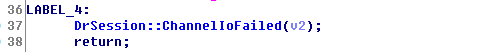 回到rdpdr头部处理函数rdpdr!DrSession::RecognizePacket,我们发现在链表遍历失败后将会进行跳转,最后将会进入读取失败处理函数rdpdr!DrSession::ChannelIoFailed,然后直接return了