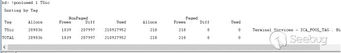 首先被释放的MS_T120池大小包括是0x170,池的标志是TSic